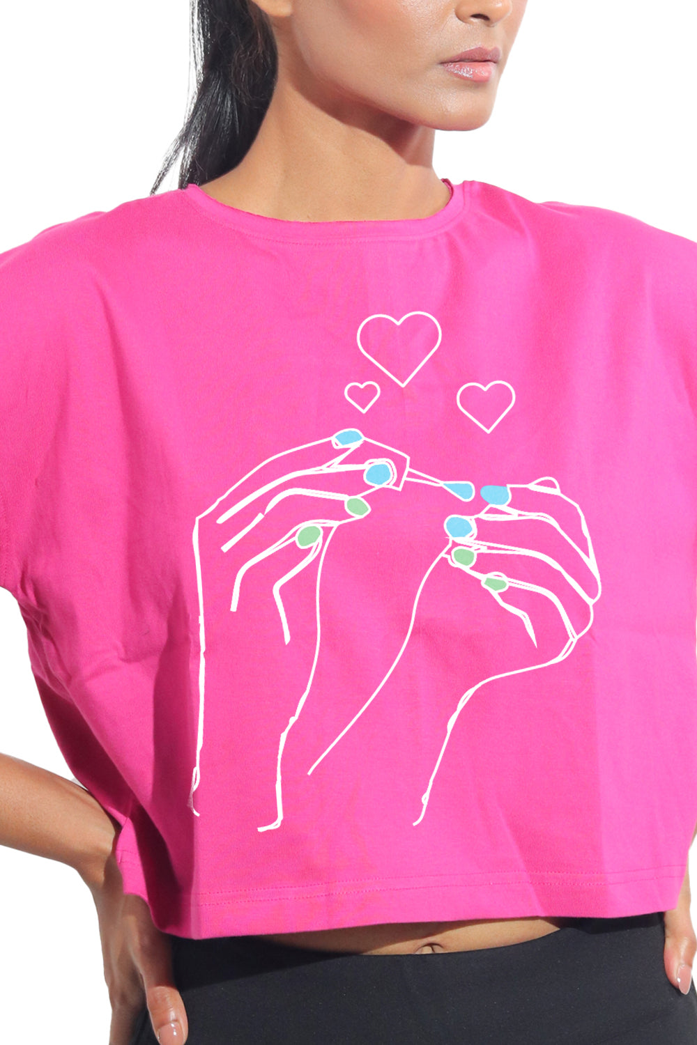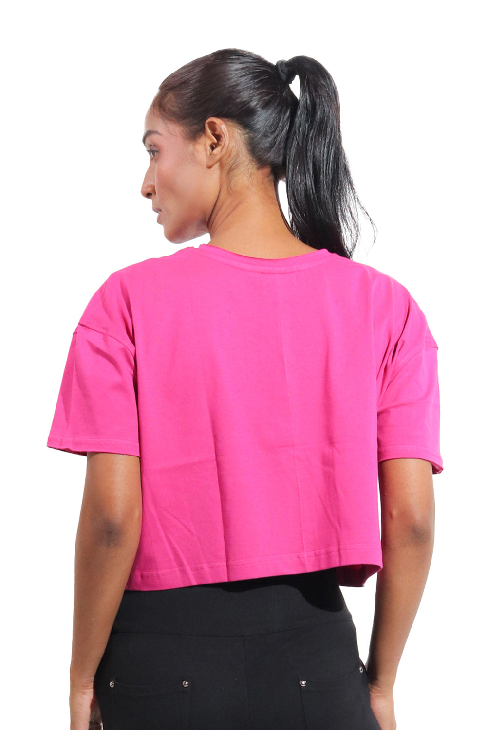 Kinnko Premium Cotton Women’s Magenta Printed Crop T-Shirt