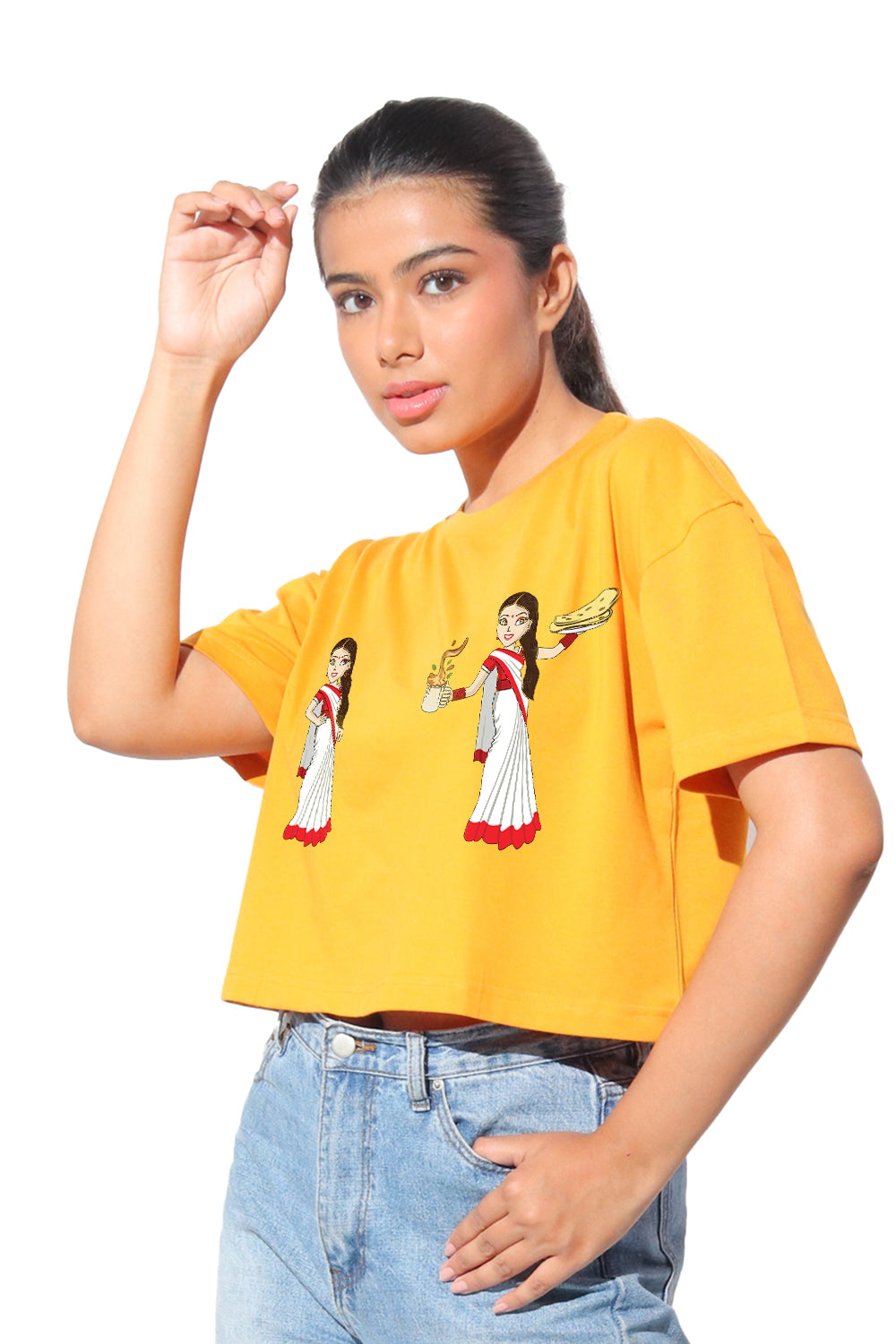 Enjoy effortless fashion with our women’s crop tee, designed from premium cotton for a soft and breathable touch. The cropped style gives a trendy, relaxed fit, perfect for both casual wear and lounging at home. With a classic crew neckline and short sleeves, this top combines versatility with enduring comfort. Pair it with high-waisted jeans or skirts for a chic, laid-back appearance.