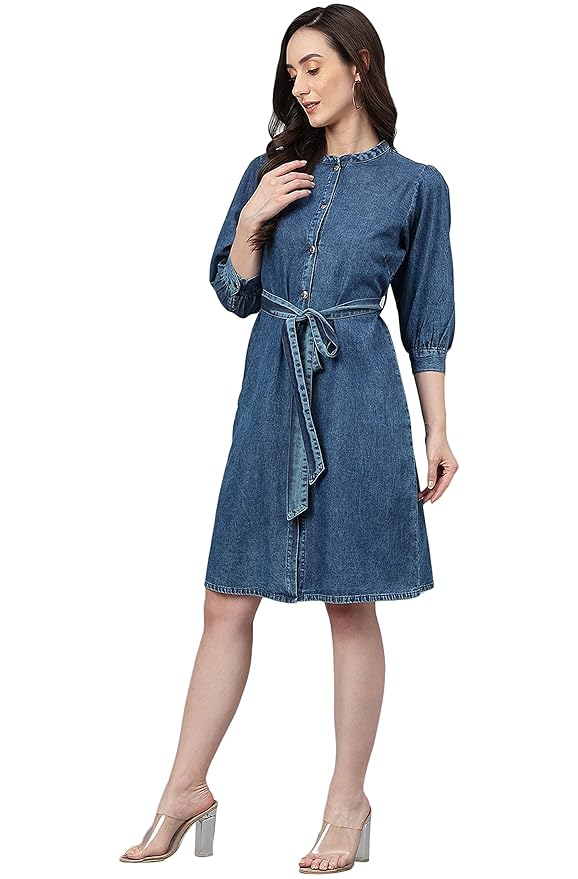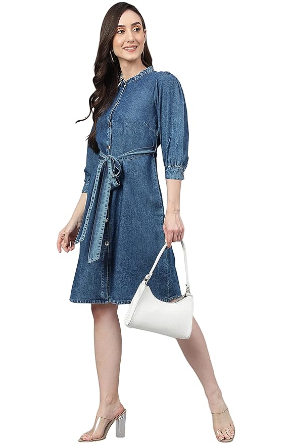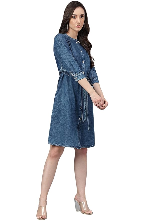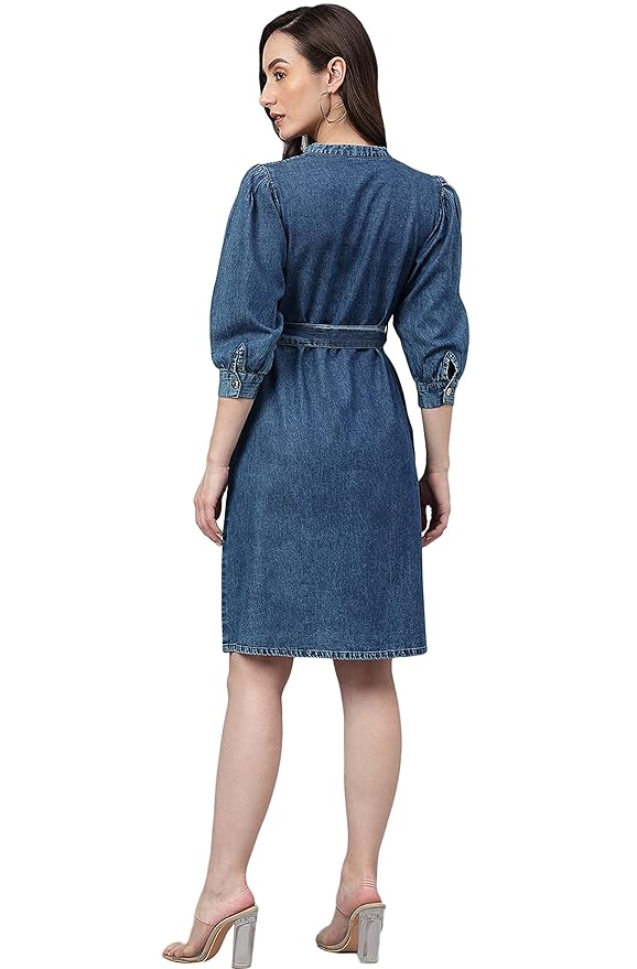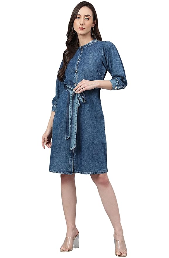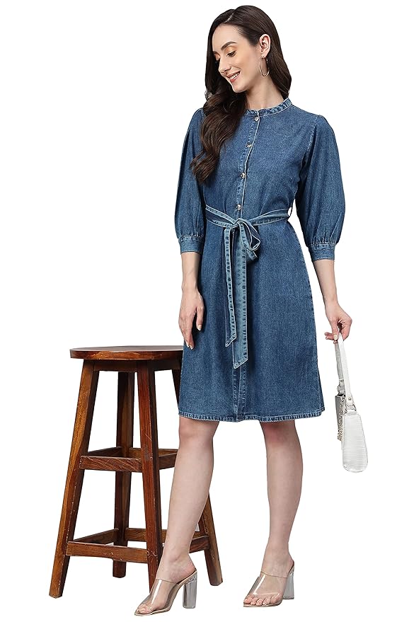 Discover the Kinnko Blue Denim Solid Straight Western Dress, a staple for modern elegance and casual charm. This dress is designed with high-quality denim for a durable yet soft feel, featuring a straight cut that ensures a flattering fit for any body type. The classic blue shade and Western-inspired details, such as a button-down front and stitched accents, bring a touch of timeless sophistication. Perfect for day-to-night transitions, this versatile piece pairs seamlessly with both sneakers and heels. Upgrade your wardrobe with Kinnko’s denim dress, combining effortless style with lasting comfort for every occasion.