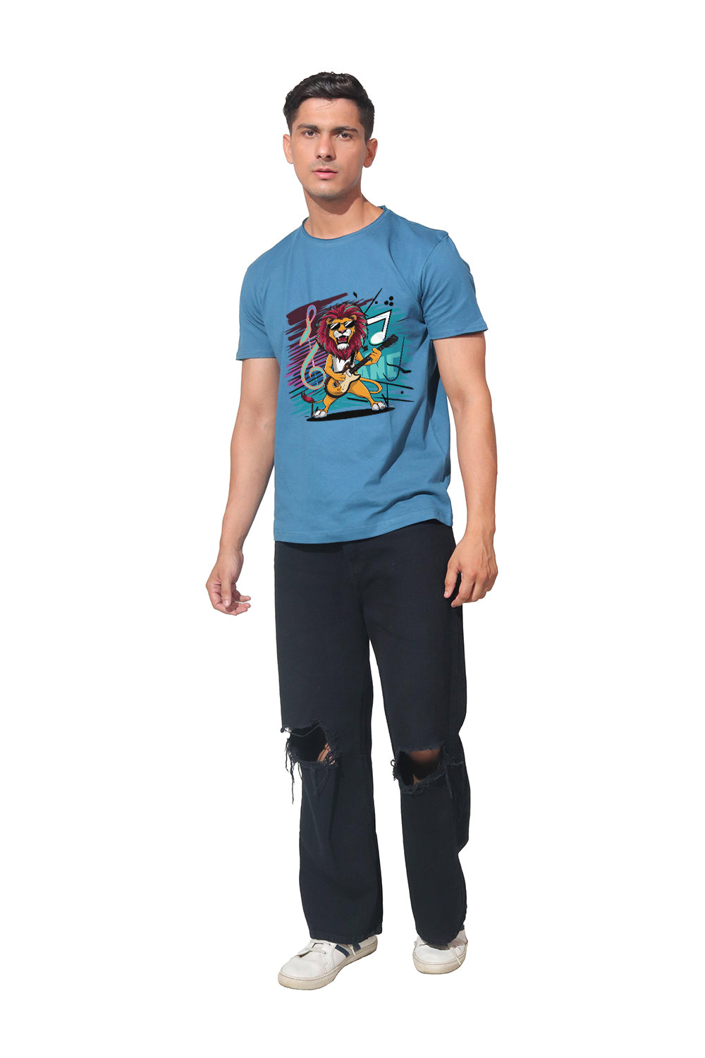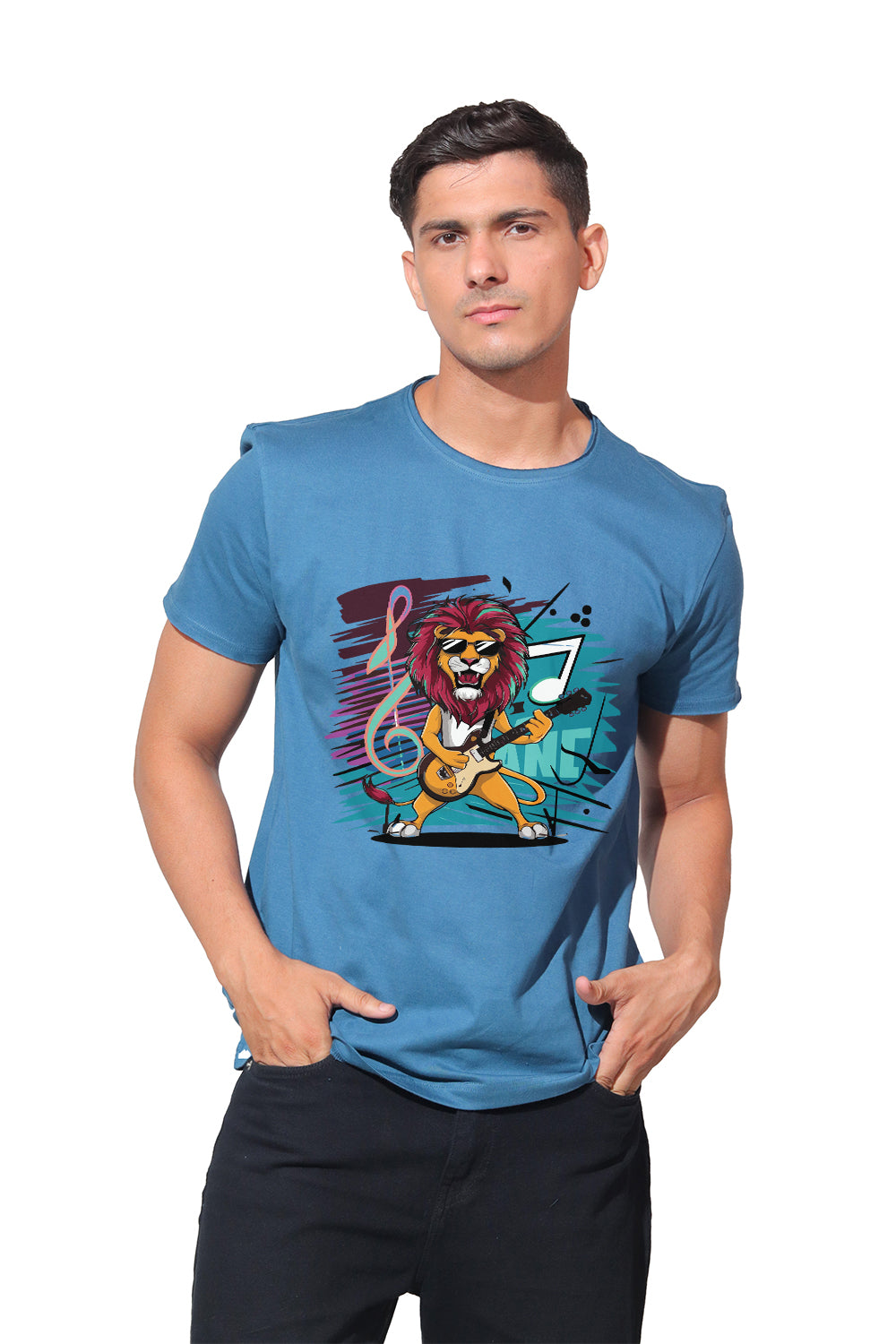 Kinnko Premium Cotton Men’s Printed T-Shirt – Steel Blue
