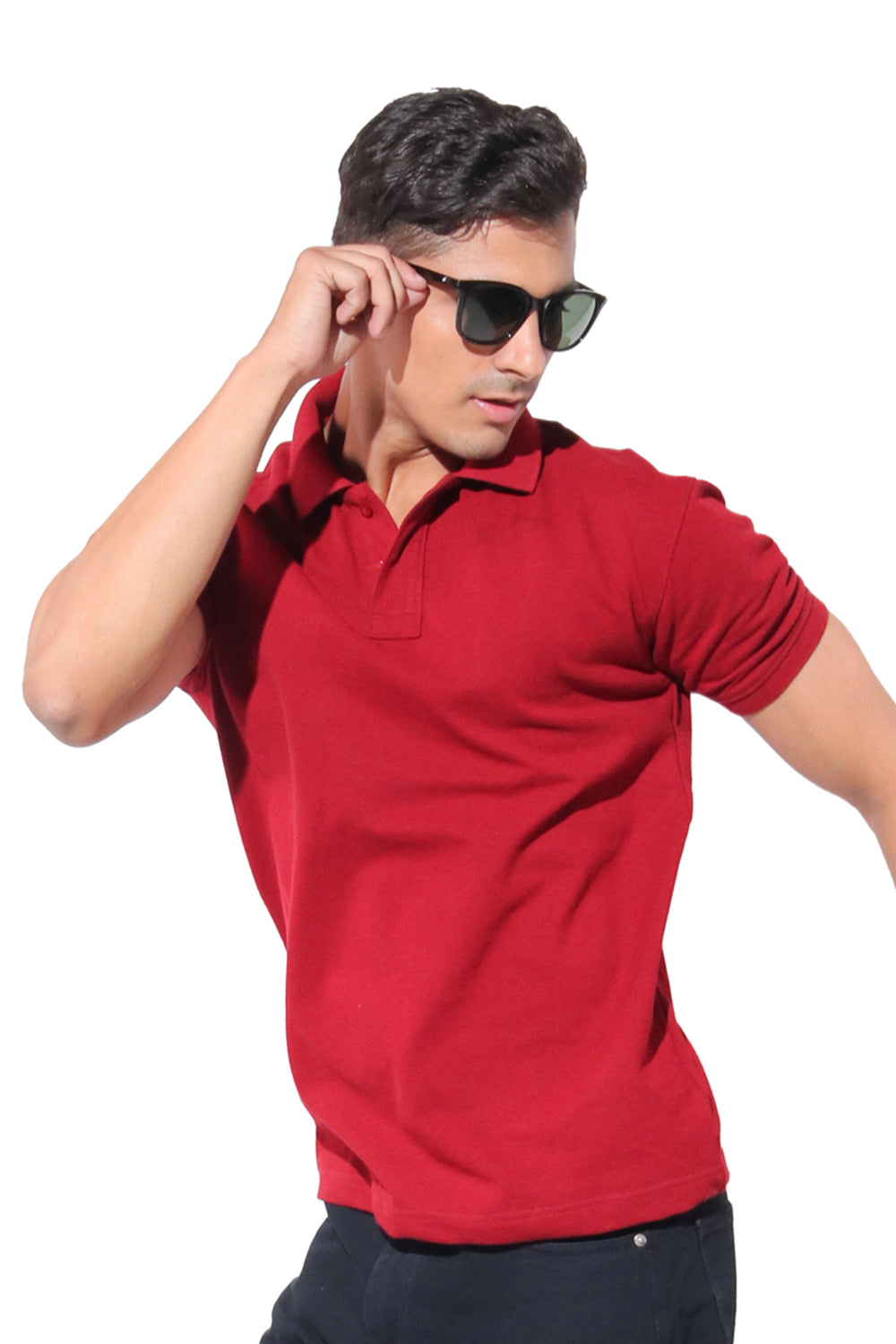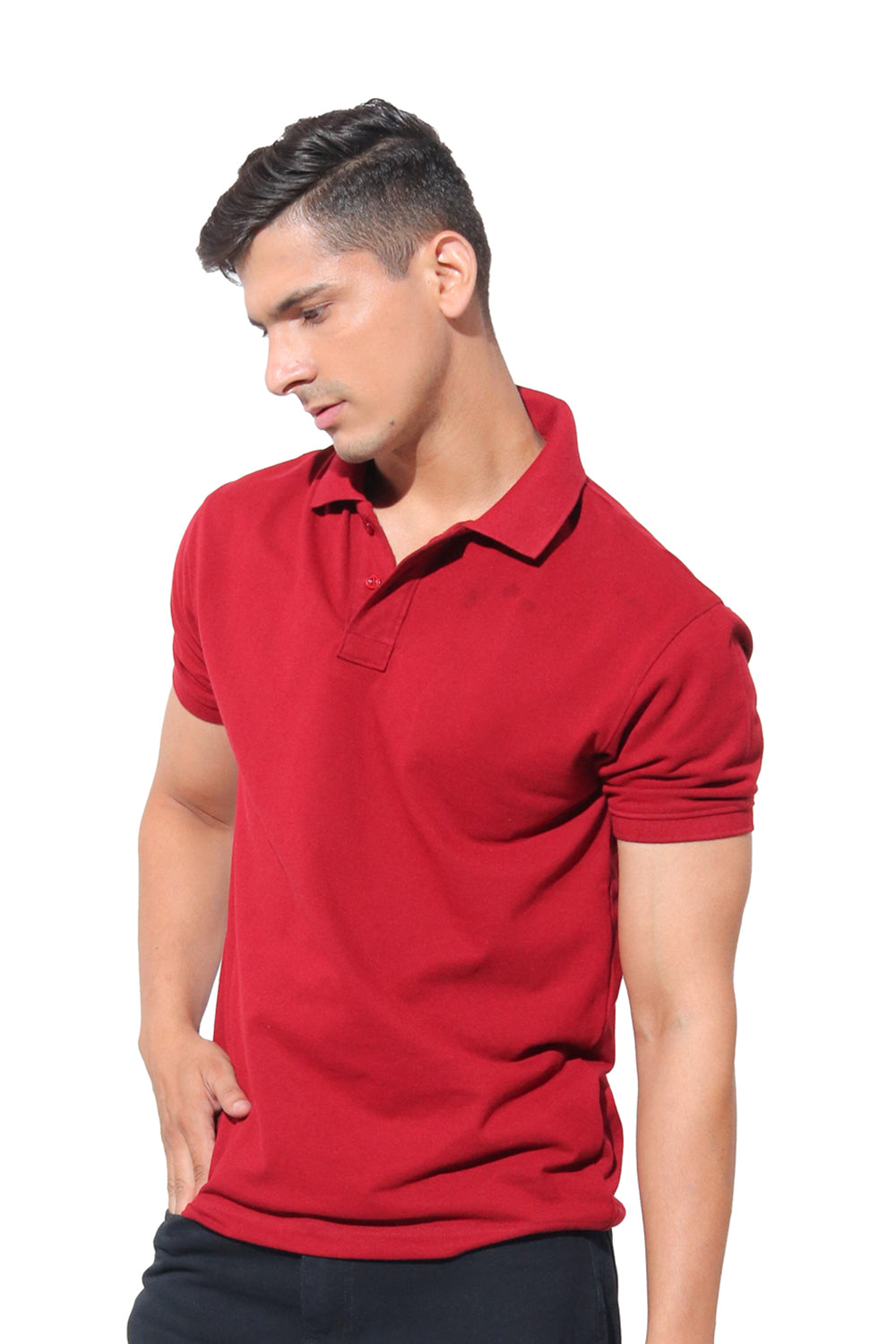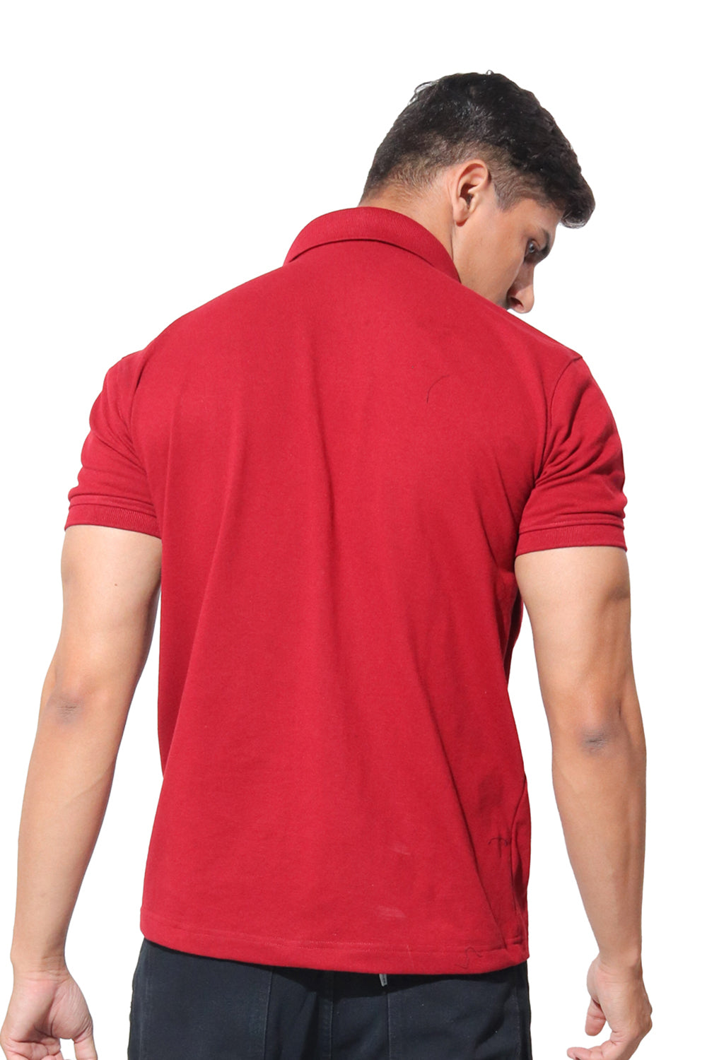 Kinnko Premium Men’s Dark Red Polo Neck Cotton Solid T shirt