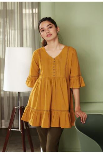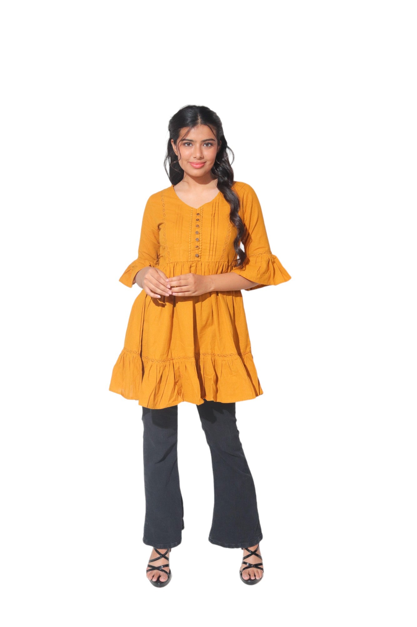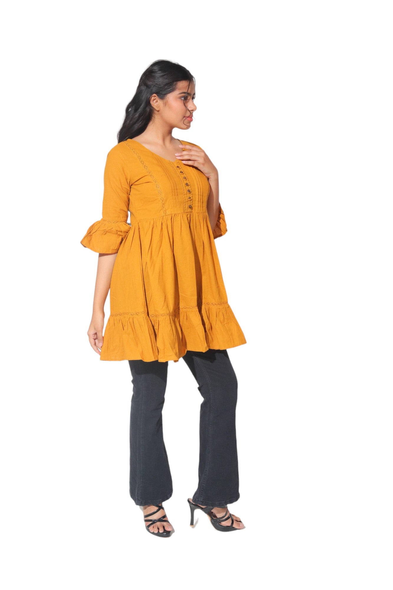 Brighten your wardrobe with the Kinnko Mustard Cotton Flex Embellished Gathered Tunic Top. Crafted from breathable cotton flex, this top offers a vibrant mustard hue that's perfect for adding a pop of color to your outfits. The embellished detailing adds a touch of sophistication, while the gathered design creates a flattering, flowy silhouette. Ideal for both casual and semi-formal occasions, this tunic top pairs effortlessly with jeans or leggings. Embrace comfort and style with Kinnko’s exquisite tunic, where contemporary design meets timeless elegance.