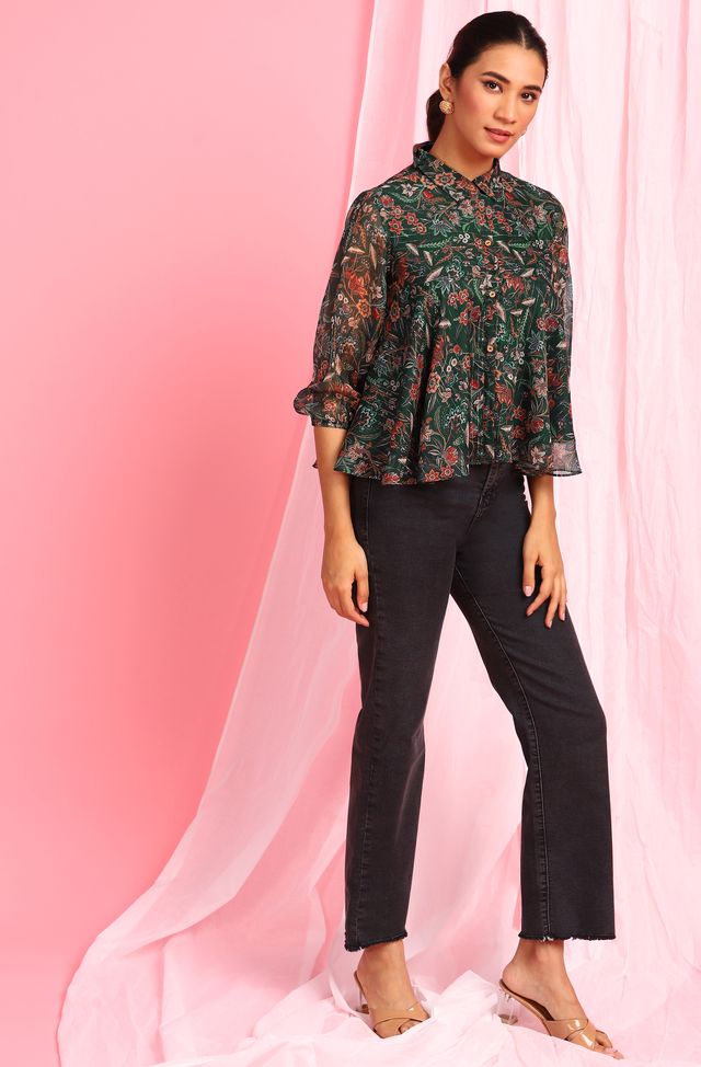Refresh your style with the Kinnko Green Poly Georgette Floral Print Regular Top. Featuring a fresh green hue and a charming floral print, this top exudes a vibrant, nature-inspired elegance. Made from lightweight poly georgette, it offers a flowy, breathable fit that drapes beautifully on the body. The regular silhouette ensures a relaxed yet flattering shape, perfect for both everyday wear and special occasions. Pair this versatile top with your favorite trousers or skirts for a chic, polished look. Embrace effortless beauty and contemporary design with Kinnko’s exquisite floral print top.
