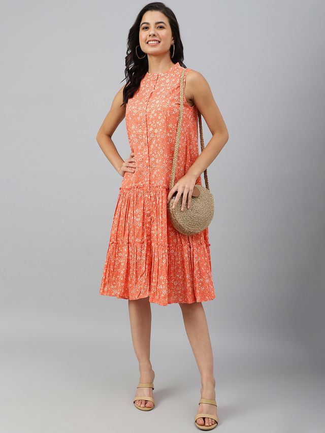 Refresh your style with the Kinnko Peach Cotton Floral Block Print Flared Western Dress. Crafted from soft, breathable cotton, this dress features a delicate peach hue adorned with a charming floral block print. The flared A-line silhouette offers a flattering fit, enhancing your natural shape while providing comfortable, free-flowing movement. Perfect for casual outings or summer events, its timeless Western-inspired design adds a touch of elegance. The lightweight cotton fabric ensures all-day comfort, while the floral print brings a fresh, feminine flair. Embrace effortless beauty and classic style with Kinnko’s beautifully crafted flared dress.