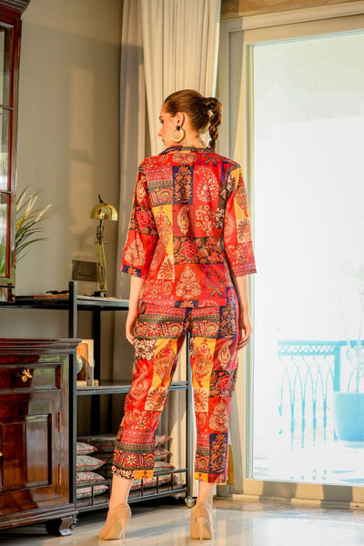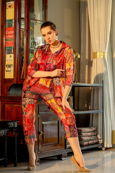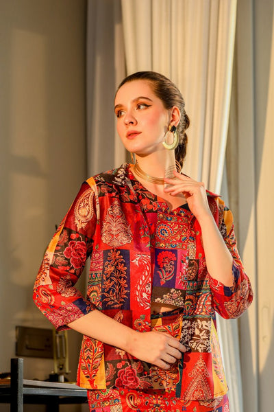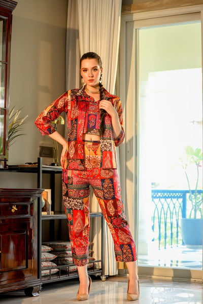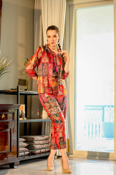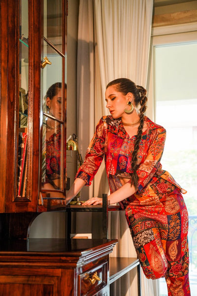 Look red-hot in the SERISHA Red Silk Co-Ord set! This luxurious two-piece set features bold colors and an eye-catching design guaranteed to make you stand out. Crafted with high-end silk, the pieces are designed to flow and fit in all the right places. Add a statement piece to your wardrobe today, and turn heads wherever you go!